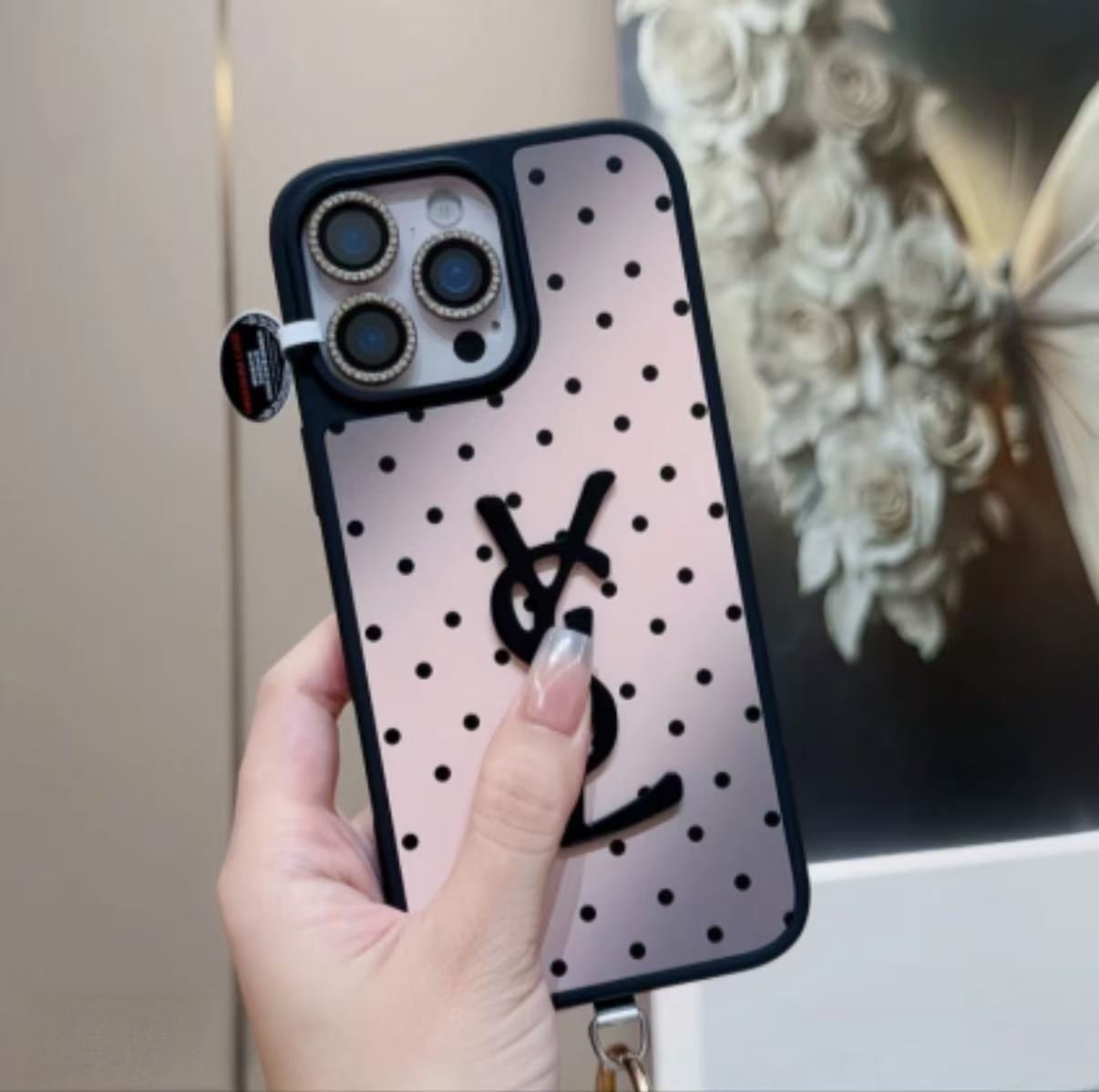170.高定シリーズ上品クラシックドット柄スマホケース対応iPhone17ProMax16Pro14高級質感軽量耐衝撃全面保護高透明レンズガード付き滑り止め仕様手触り良好大人可愛いシンプルデザイン通勤通学お出かけ旅行日常使用に最適トレンド人気愛用者増加中高見えスマホカバー
