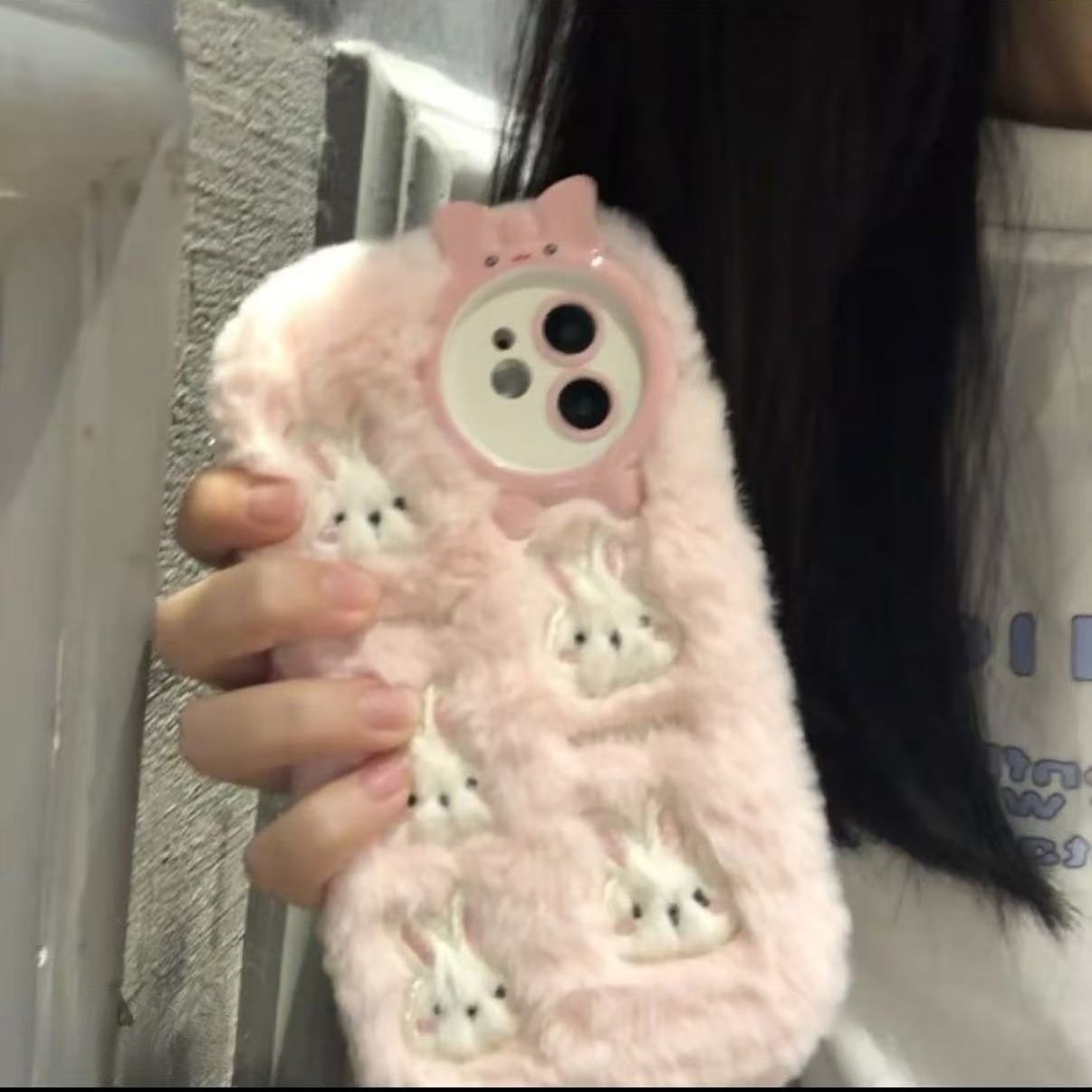208.可愛いウサギふわもこiPhone15ProMaxスマホケース 14Pro対応 爆款 13用 少女系